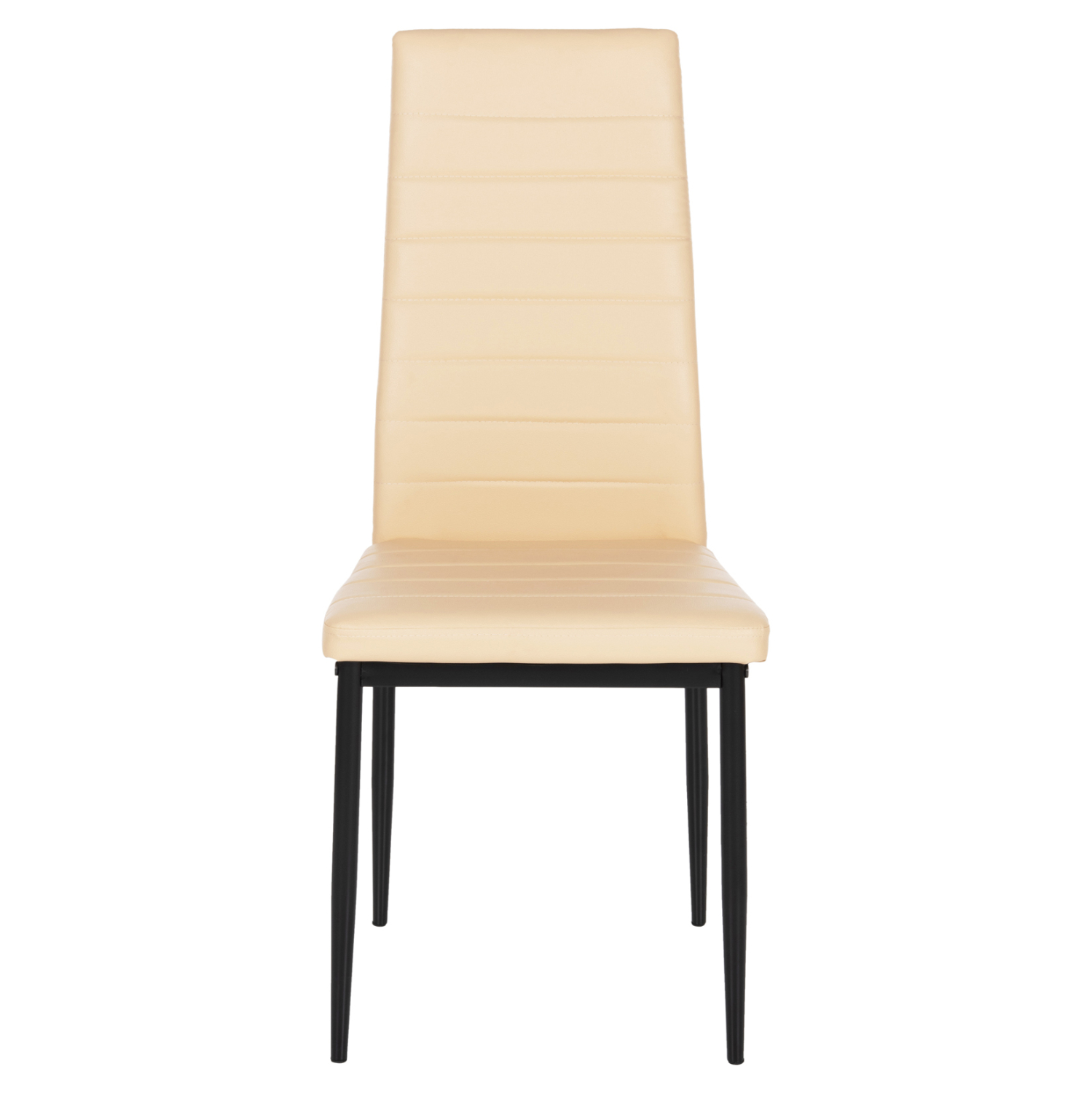Стол за јадење со црна метална рамка и обложен со КРЕМ БЕЛА кожа.