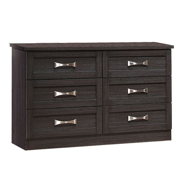 Тоалет со фиоки од висококвалитетен меламин со 6 фиоки. Боја Зебрано Димензии 120χ40χ76H cm Димензии на фиоки: 51x31x14,5H cm Производот е достапен во пакет несоставен со упатство за составување.