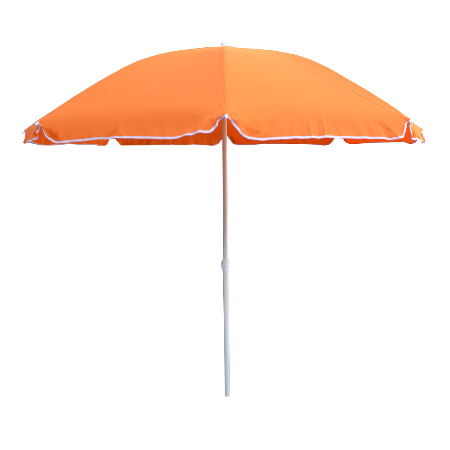 Заоблен чадор за плажа со наклон и крилца, во портокалова боја со дијаметар 2 метри и цевка ’25/22mm, со 8 зраци од фиберглас со дебелина 5mm. Ткаенина 180 гр Чадорот е погоден за употреба во ведро време, во спротивно треба да се затвори. Исто така, не прима поправка.